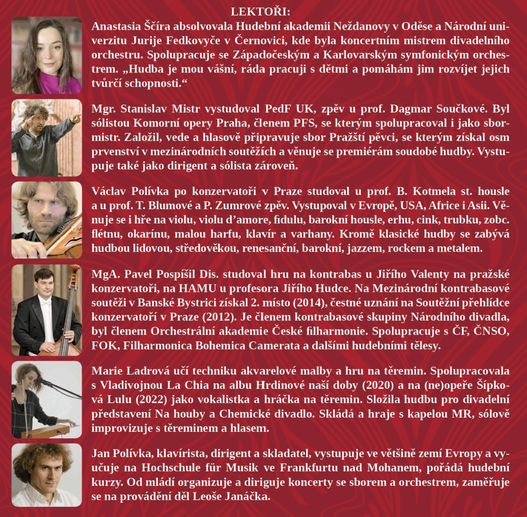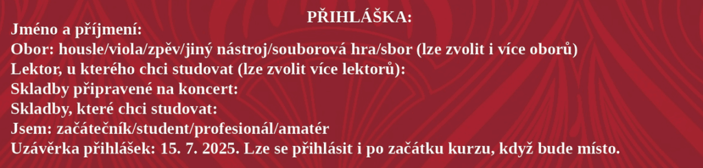 Pro všechny budou semináře nástrojové a pěvecké technologie, intonace, interpretace a improvizace.